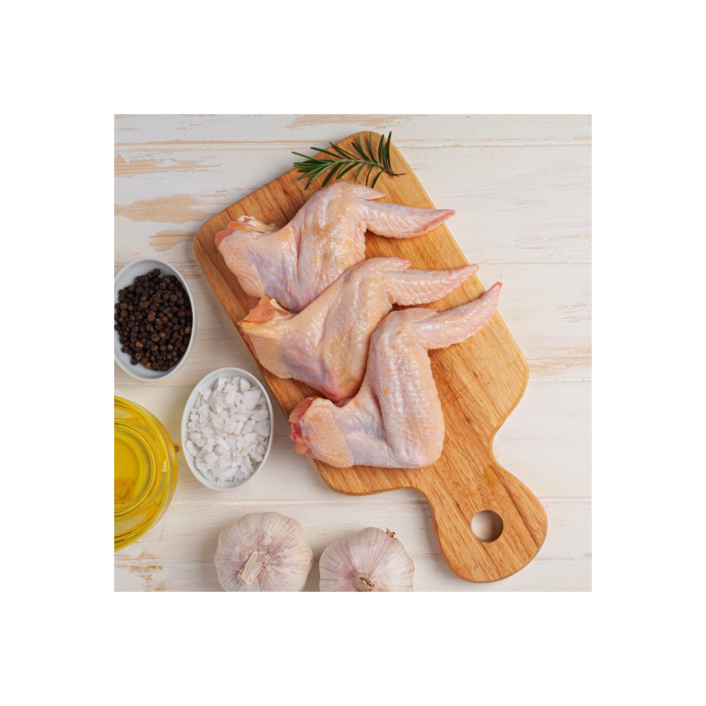 Alas de pollo ecológico con piel y sin punta, perfectas para hornear o hacer a la parrilla. Carne sabrosa y natural procedente de aves criadas en libertad y sin tratamientos químicos.